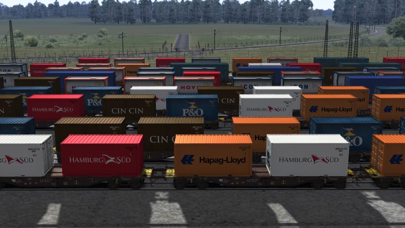 Detailliert für den Train Simulator umgesetzt kann dieser mit 20 Fuß, 40 Fuß oder Tankcontainern beladen werden.