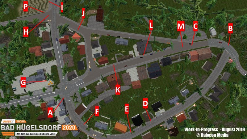 Aktuelle Bilder aus der Entwicklung sehen Sie am Ende dieser News. Außerdem haben wir eine Übersichtskarte erstellt, wo die Screenshots aufgenommen wurden. Die jeweiligen Buchstaben finden sich in den Screenshots wieder. Es gibt zudem eine Straßenkarte aus Larnhalt, bei der man sich den Streckenverlauf und die Haltestelle noch einmal ansehen kann.