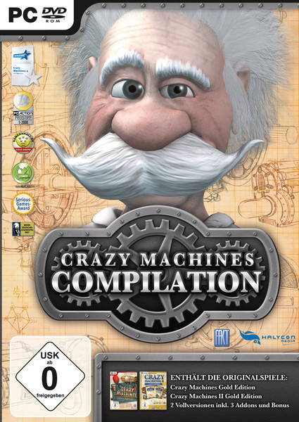 Die Crazy Machines Compilation enthält die Vollversionen von Crazy Machines 1 und 2, sowie 3 Erweiterungen und weitere Bonuslevel.