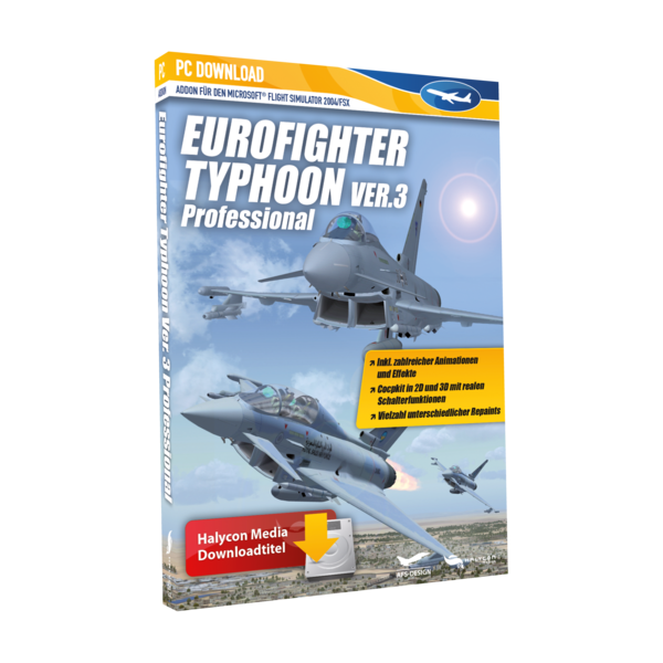 Mit der Erweiterung Eurofighter Professional 3 für den Microsoft Flugsimulator FS2004 und FSX erscheint im Dezember die aktuellste Version des Eurofighters vom Entwicklers AFS-Design als Downloadversion bei Halycon.
