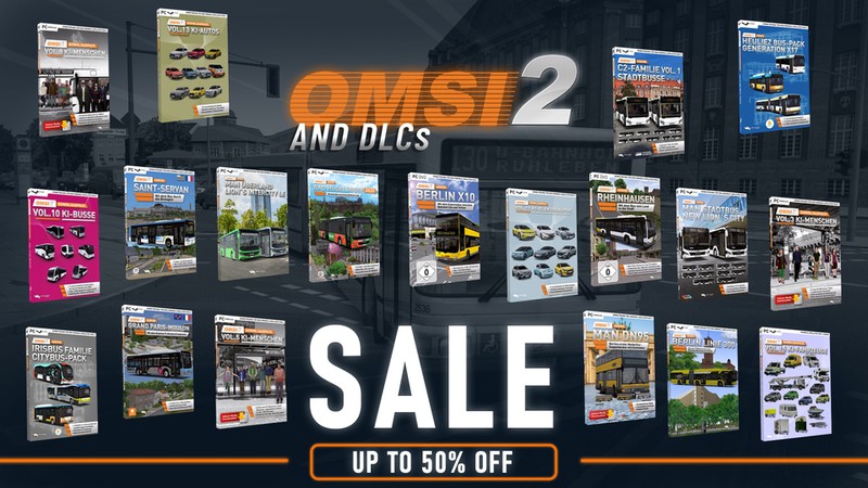 Zahlreiche Titel rund um OMSI 2 – Der Omnibussimulator sind in diesem Zeitraum mit bis zu 50 % Rabatt erhältlich, darunter auch alle verfügbaren OMSI-Produkte von Halycon Media.
