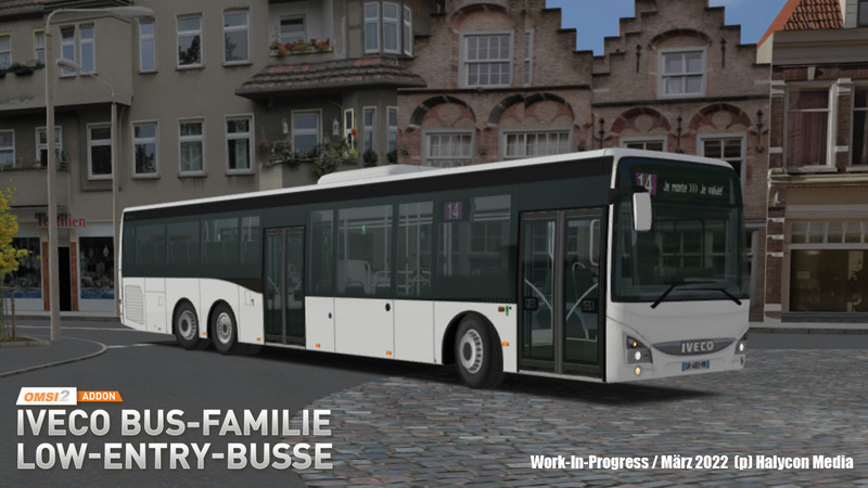 Voraussichtlich im April erscheint mit dem OMSI-Fahrzeug-AddOn IVECO BUS-Familie Low-Entry-Busse ein Paket mit 40 Modellen der CITY- und LINE-Versionen.
