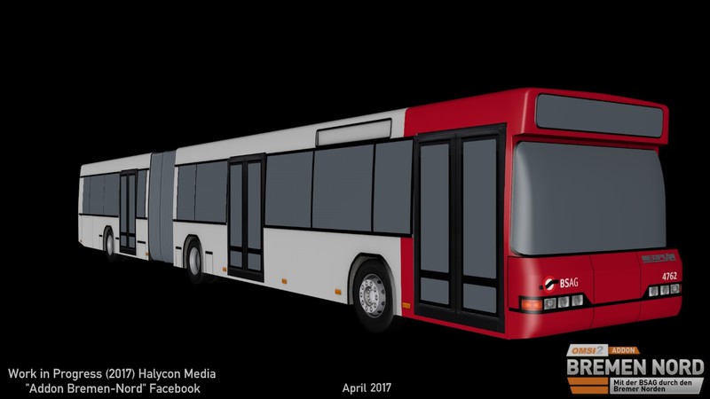 Die Renderbilder zeigen den Bus in einer frühen Phase, die BSAG-Lackierung ist schon teilweise zu sehen. Wie immer weisen wir darauf hin, dass es sich um Bilder aus der Entwicklung handelt, also Work in Progress, aber noch nicht um finale Bilder.