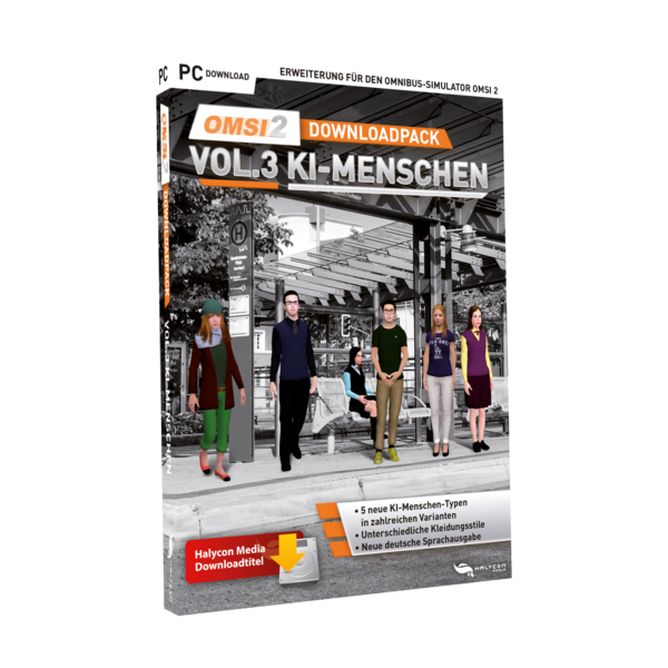 Teil 3 der OMSI2-Downloadpack-Reihe widmet sich den KI-Menschen und enthält zahlreiche Varianten von KI-Menschen, welche nun die OMSI-Map bevölkern können.