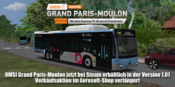 Das OMSI-AddOn Grand Paris-Moulon hat ein Update auf die Version 1.01 erhalten und kann wieder über Steam oder den Aerosoft-Shop erworben werden.