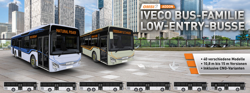 Ab sofort ist die neue OMSI2-Fahrzeugerweiterung IVECO BUS_Familie – Low-Entry-Busse bei Steam verfügbar.