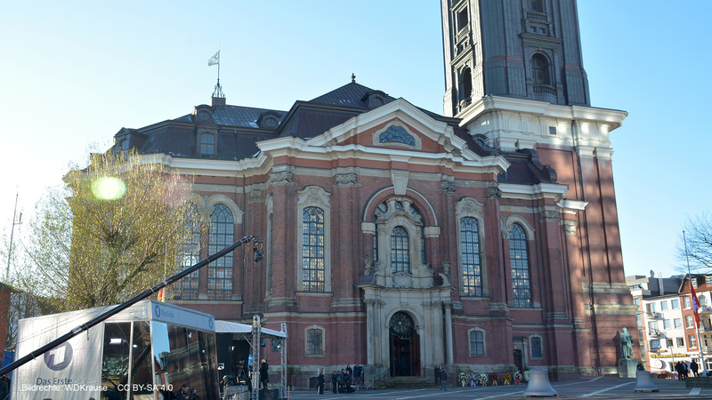 Eines der bekanntesten Wahrzeichen Hamburgs ist die Hauptkirche Sankt Michaelis, kurz Hamburger Michel genannt. Weithin sichtbar, sogar für den Schiffsverkehr auf der Elbe, gehört sie zum Stadtbild Hamburgs, wie die Elbphilharmonie und der Fernsehturm und hat es sogar auf Briefmarken und Münzen geschafft.