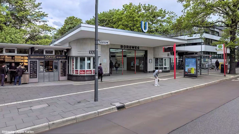 Die U-Bahnstation Borgweg befindet sich im Hamburger Stadtteil Winterhude, südlich des Hamburger Stadtparkes gelegen.