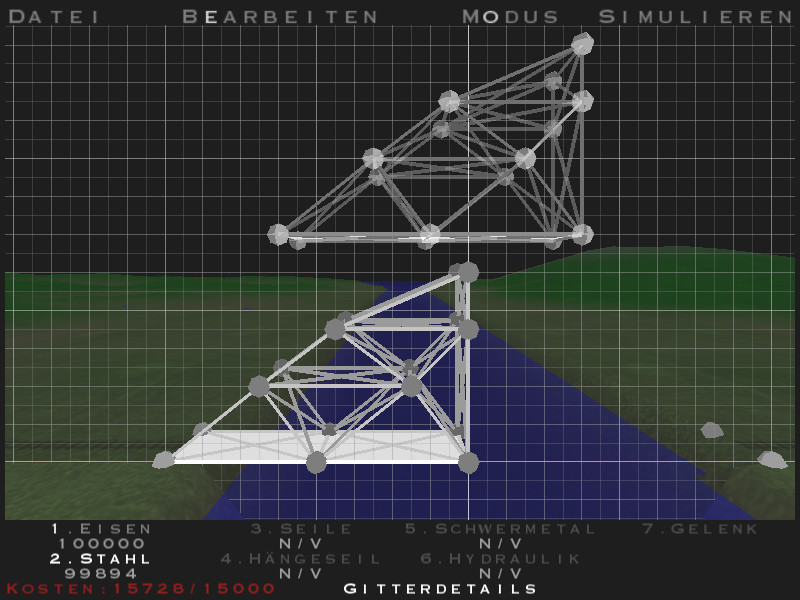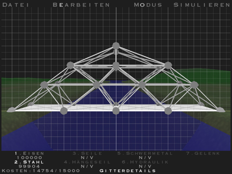 Mit Bridge Builder können Sie Ihre eigenen Brücken designen und bauen. Sie müssen dabei versuchen, mit begrenzten Ressourcen auskommen und gestellte Aufgaben zu lösen. Sobald Ihr Werk fertig ist, wird es auf Stabilität geprüft in dem Fahrzeuge über Ihre Brücke fahren. Hält die Brücke, dann wissen Sie, dass Ihre Planung erfolgreich war. Wenn nicht, heißt es zurück zum Konstruktionsmodus.