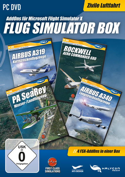 Die Sammlung „Flug Simulator Box FSX – Zivil“ enthält die AddOns von vier besonderen zivilen Flugzeugen aus unterschiedlichen Klassen. Jedes Flugzeug wurde speziell für den FSX umgesetzt und mit zahlreichen Funktionen ausgestattet.